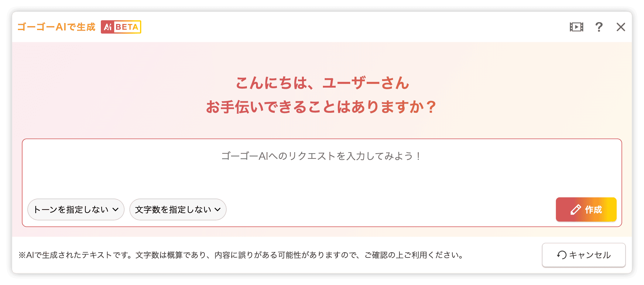 ゴーゴーAIが自動で原稿を生成。ゴーゴーAIに「〇〇の文章を考えて!」とリクエストを送るだけで、バリエーション豊かな文章を作成してくれます。