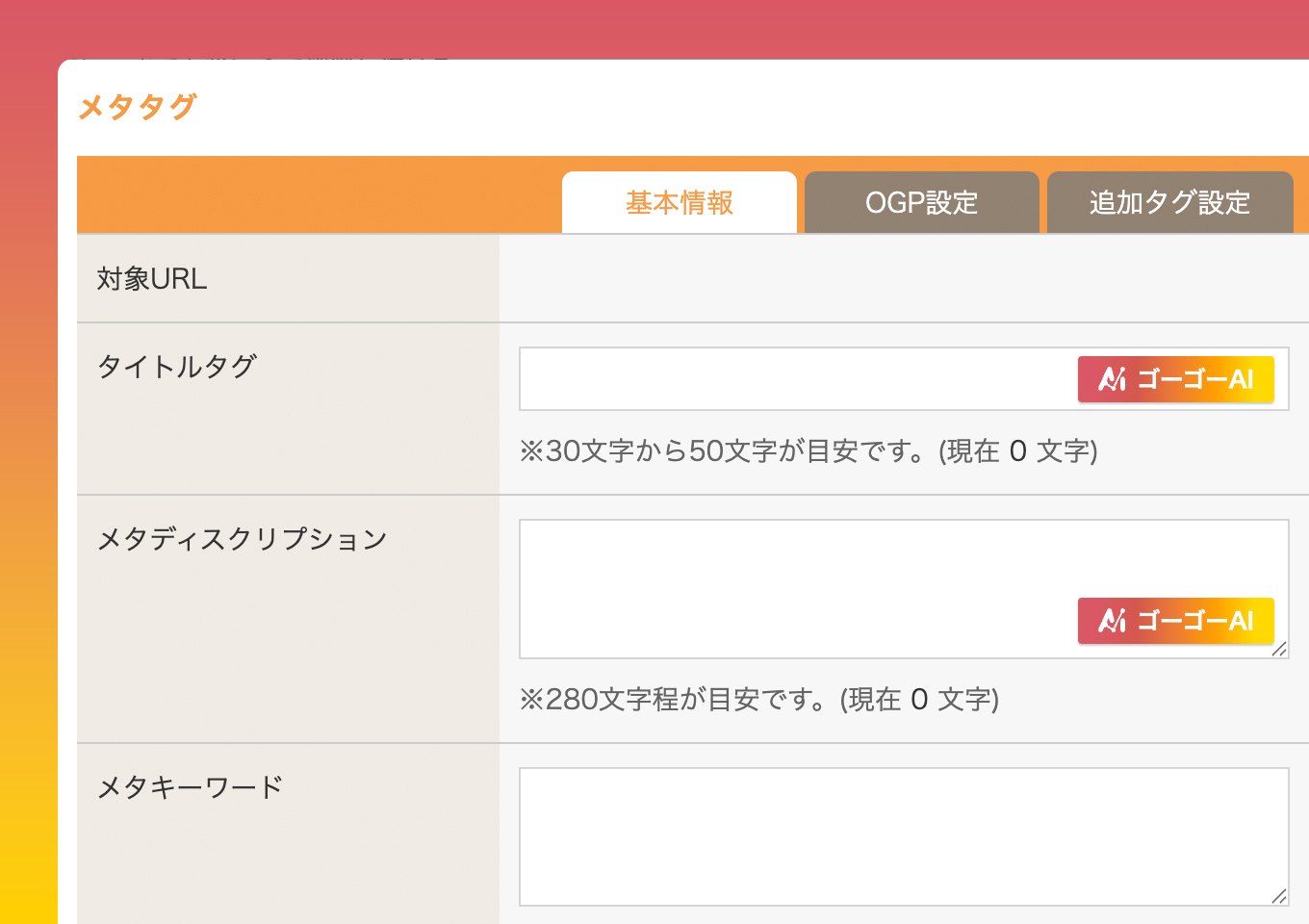 SEO対策に必要なメタタグ作成も、ゴーゴーAIにおまかせ。ページ内容を的確に要約したディスクリプションで生成します。