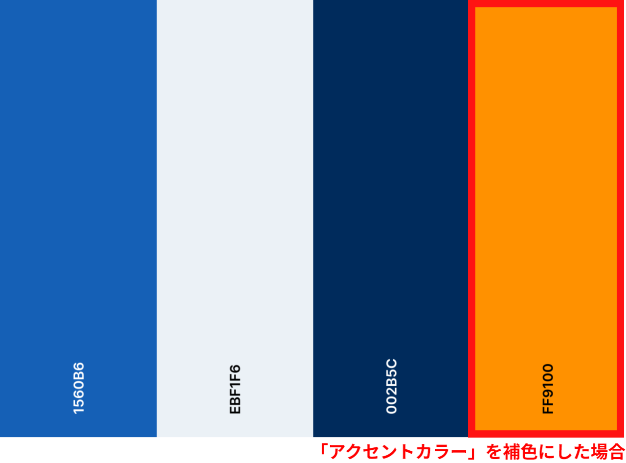 すべて同系色だとボヤけてしまうので、「アクセントカラー」だけは、「メインカラー(ダーク)」の反対色(補色)を選ぶのがポイントです。